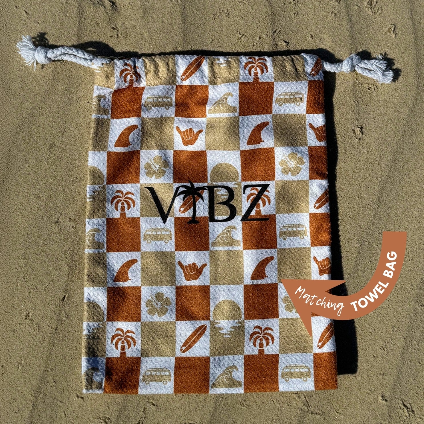 ● Matching Drawstring Bag: Comes with a matching drawstring bag featuring the same lively Shakas design, making it easy to store and transport your towel with style.